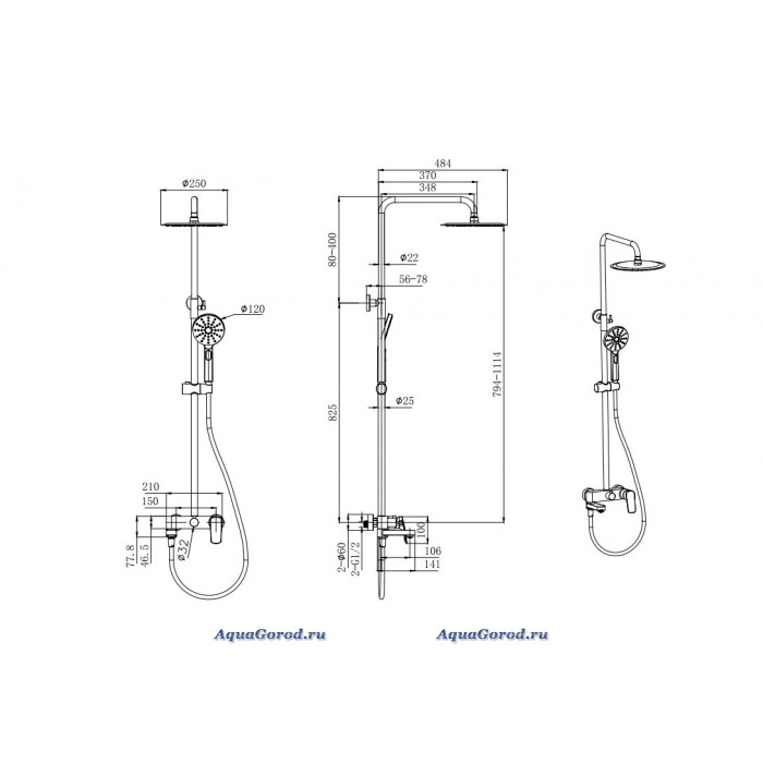 - Размер верхнего душа, мм: 250