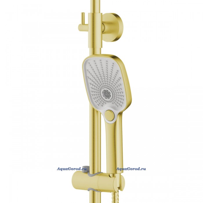 Душевая система Azario Alanti с квадратным тропическим душем золото матовое