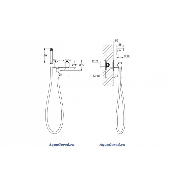 Гигиенический душ AQUATEK Бетта AQ1119CR со смесителем, С ВНУТРЕННЕЙ ЧАСТЬЮ, хром