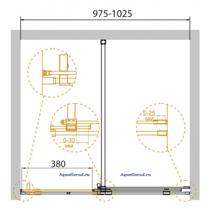 Габариты с диапазоном регулировок, мм: 975-1025х1950 мм
