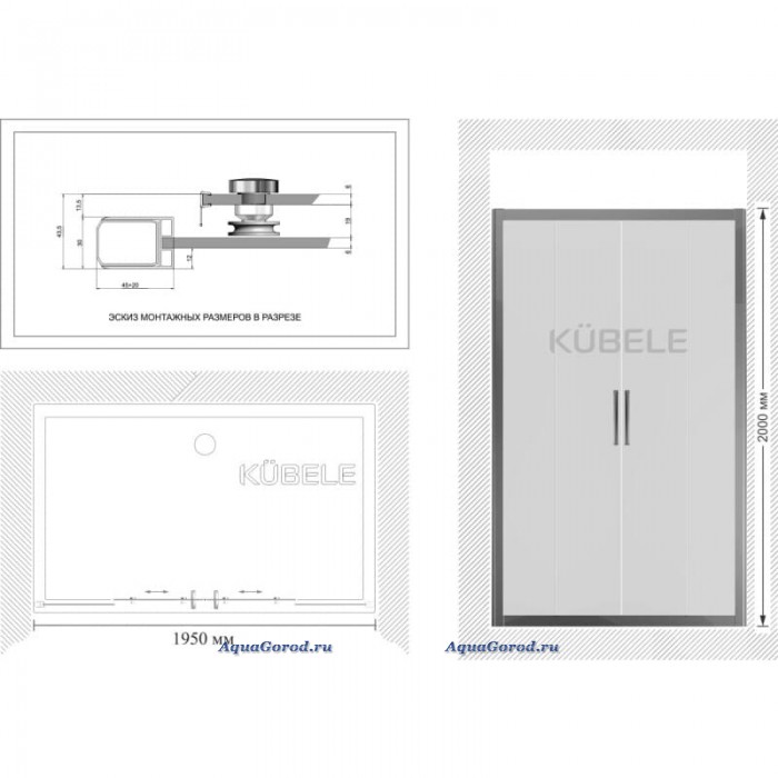 Душевая дверь в нишу Kubele 195 профиль матовый черный DE019D4-MAT-BLMT-195х200