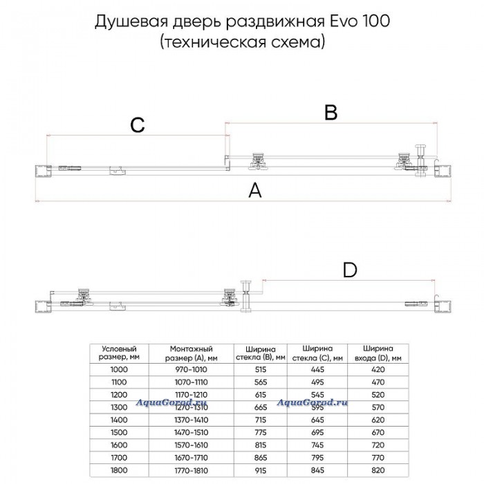 Душевая дверь в нишу Veconi Evo 100х195 раздвижная прозрачное стекло профиль черный