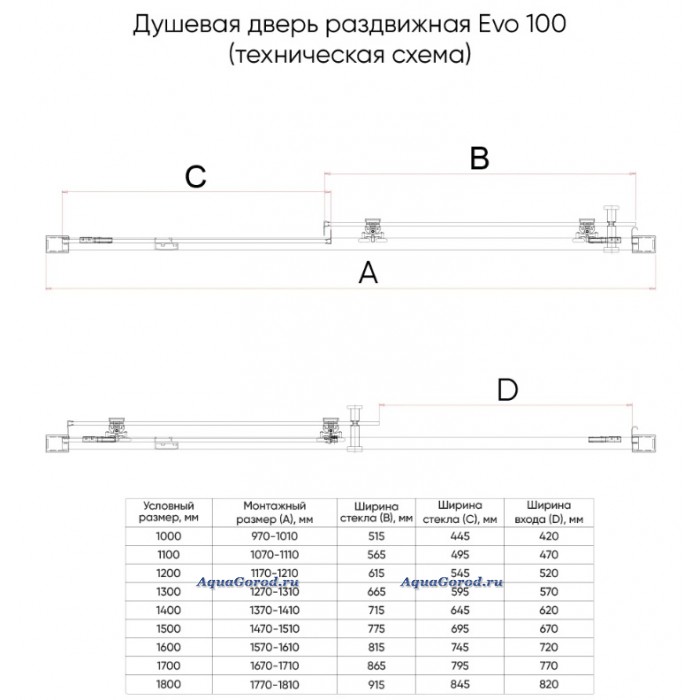 Душевая дверь Veconi Evo 100 B 170х195 прозрачное стекло профиль черный матовый