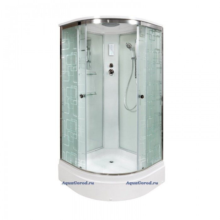 Душевая кабина DTO 100х100х220 средний поддон профиль хром стекло матовое с узором EM2710
