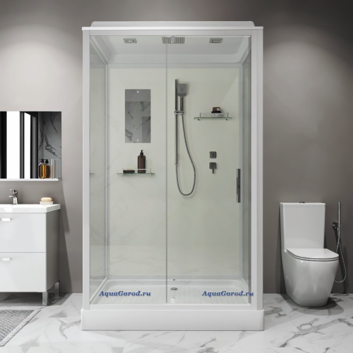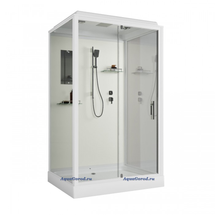 Душевая кабина Niagara Standart 100х80 с крышей распашная прозрачное стекло белый профиль