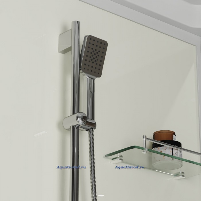 - Комплектация: ручной душ, сифон, смеситель, полочка, верхний душ