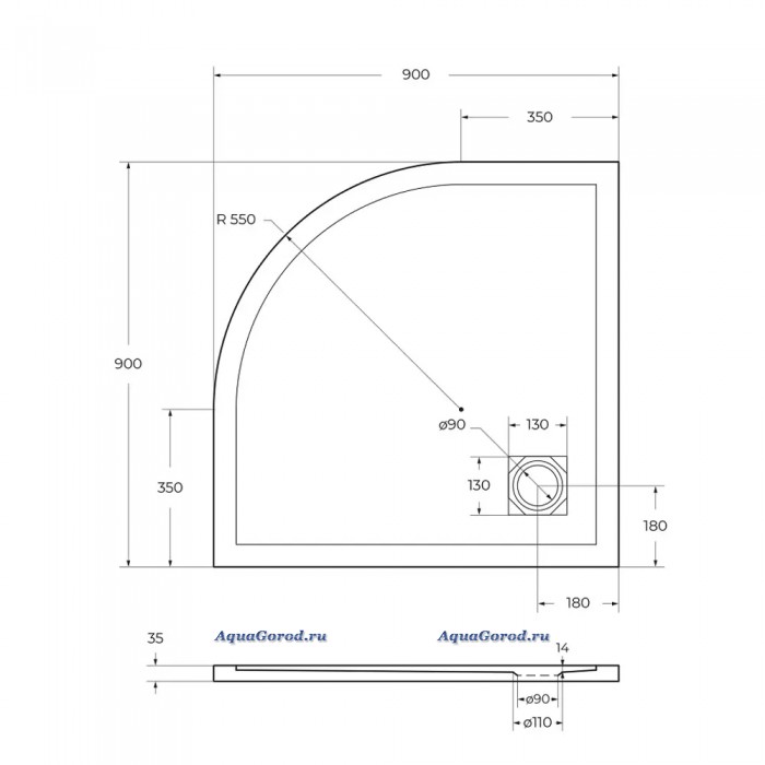 | Форма поддона | Четверть круга |