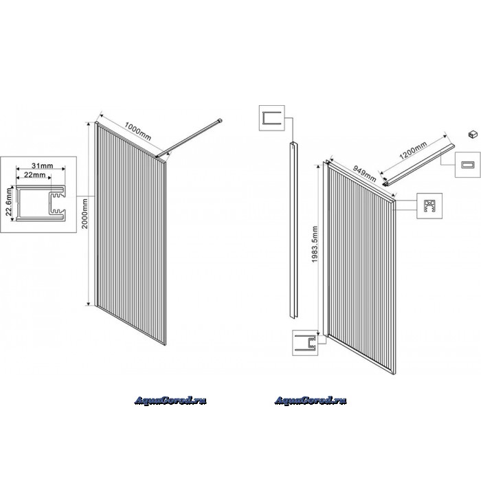 Душевая перегородка Vincea Walk-In 100х200 рифленое стекло профиль черный матовый