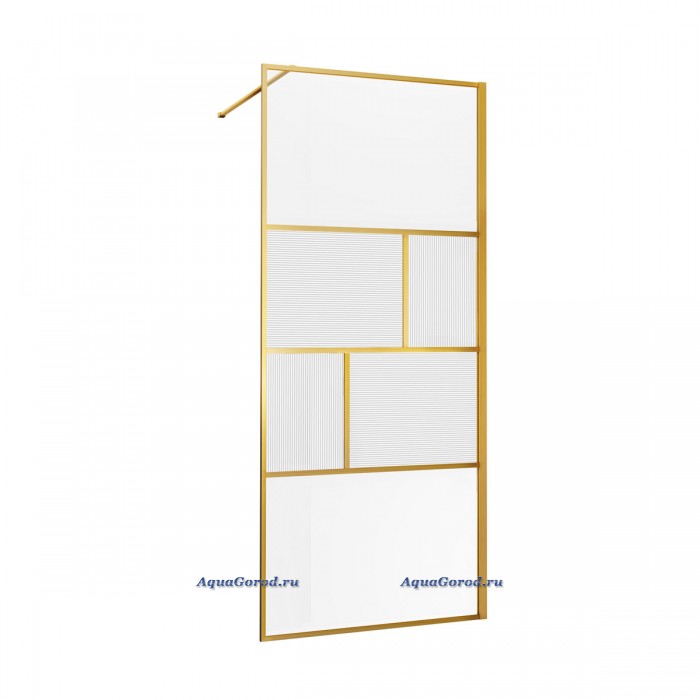 Душевая перегородка Vincea Walk-In 100х200 рифленое стекло профиль золото