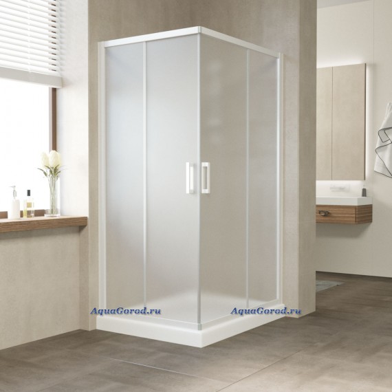 Душевое ограждение Vegas Glass ZA-F 90x80x190, профиль белый, стекло сатин