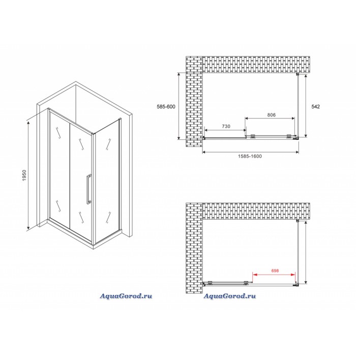 Душевой уголок Abber Schwarzer Diamant 160х60х195 прозрачное стекло профиль хром