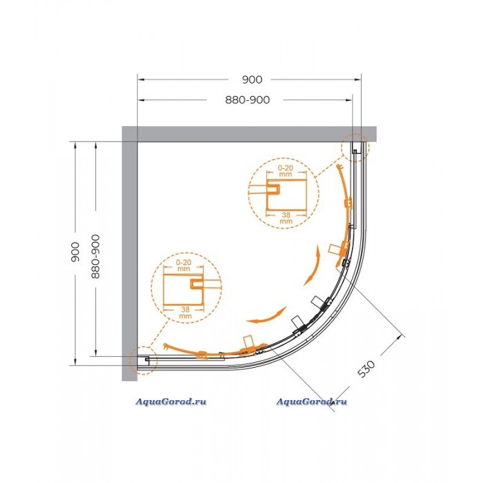 - Дополнительная информация: ширина и глубина регулируются 880-900 мм