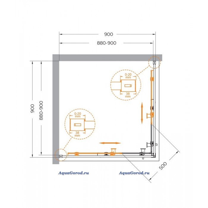 Дополнительная информация: ширина и глубина регулируются 880-900 мм