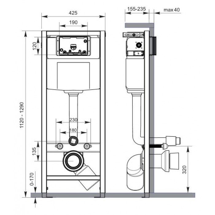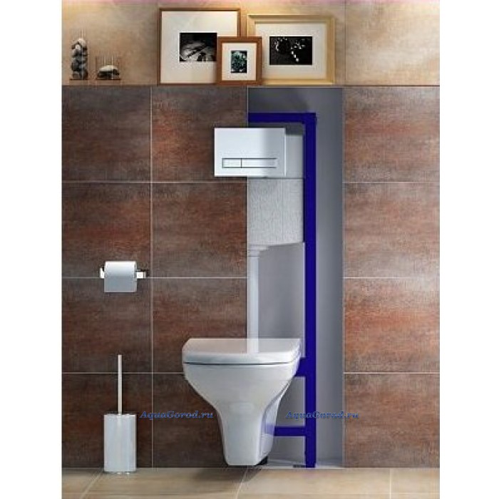 Монтажная рама для подвесных унитазов с гальваническим покрытием. Выдерживает нагрузку до 400 кг. Регулируется по высоте. Сливной бачок с эко-функцией -