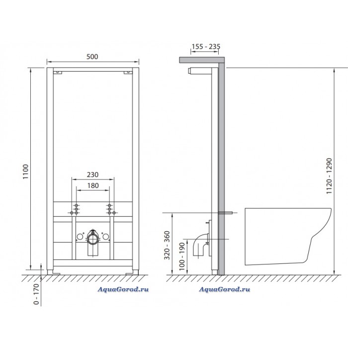 Монтажная рама для биде, крепление рамы к стене в четырех точках (стена + пол), статическая нагрузка на отрыв - 400 кг., крепеж и трубы в комплекте.