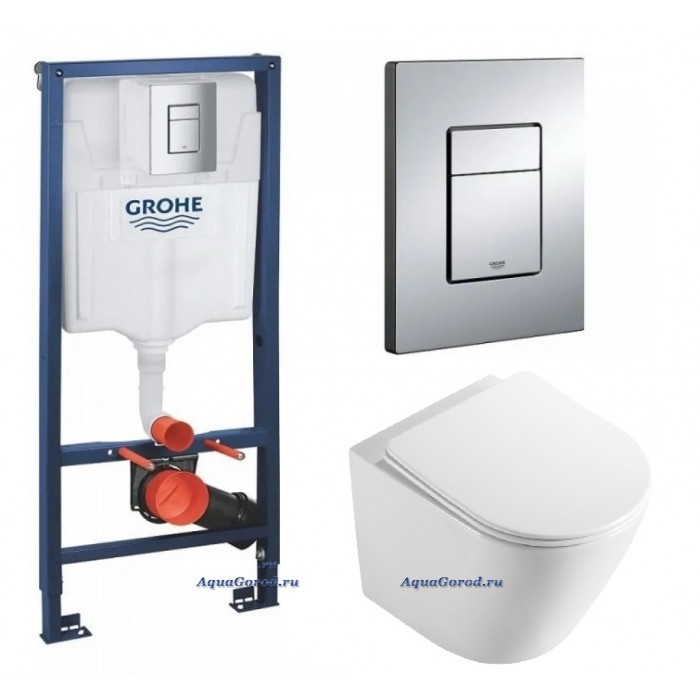 Инсталляция Grohe Rapid SL 3 в 1 с кнопкой смыва + Унитаз подвесной Baniera Кос Торнадо WaterStorm с сиденьем SoftClose