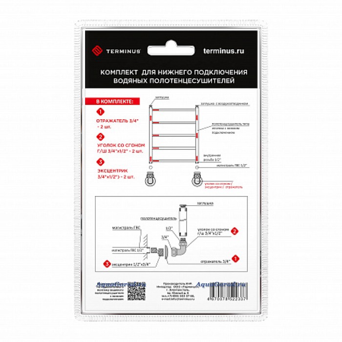 Комплект уголок со сгоном 3/4х1/2 г/ш (2шт), эксцентрик(2шт), отражатель(2шт)