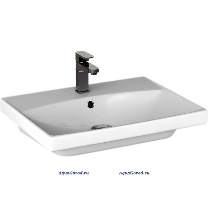 Раковина белого цвета, прямоугольной формы, по типу - полувстраиваемая, устанавливается на тумбу, с отверстием под смеситель, с отверстием под перелив. Страна производитель - Польша. Гарантия завода изготовителя - 10 лет.