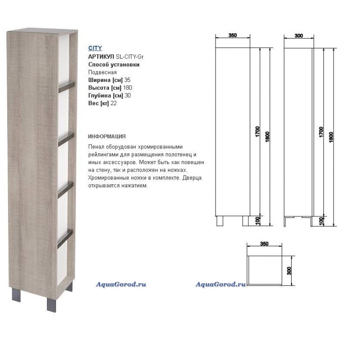 Габариты размеры, см.: ШхГхВ: 35х30х180