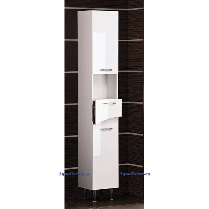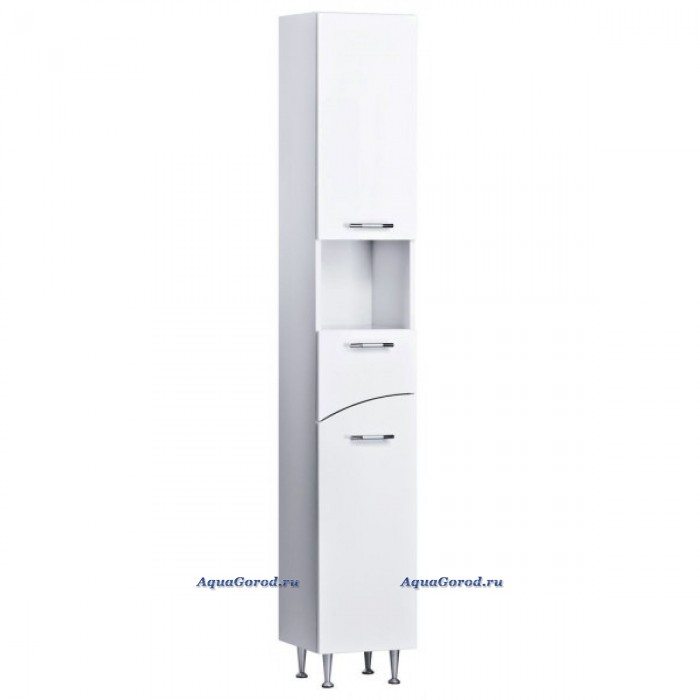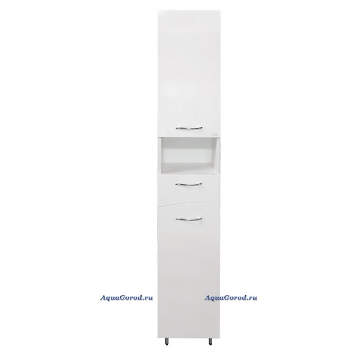 Шкаф-пенал прямоугольной формы с распашной дверкой, полкой, выдвижным ящиком и бельевой корзиной, цвет корпуса - белый; цвет фасада - белый. Способ монтажа - напольный. Ориентация - правая. Материал корпуса - ЛДСП. Материал фасада - МДФ, покрытие фасада - пленка. Состав поставки включает в себя: шкаф, распашную дверку, полку, выдвижной ящик, откидную дверку, бельевую корзину, 3 ручки, внутреннюю полку, комплект доводчиков, комплект полкодержателей, комплект опорных ножек, инструкцию по монтажу. Страна производитель - Россия. Гарантия завода изготовителя - 2 года.