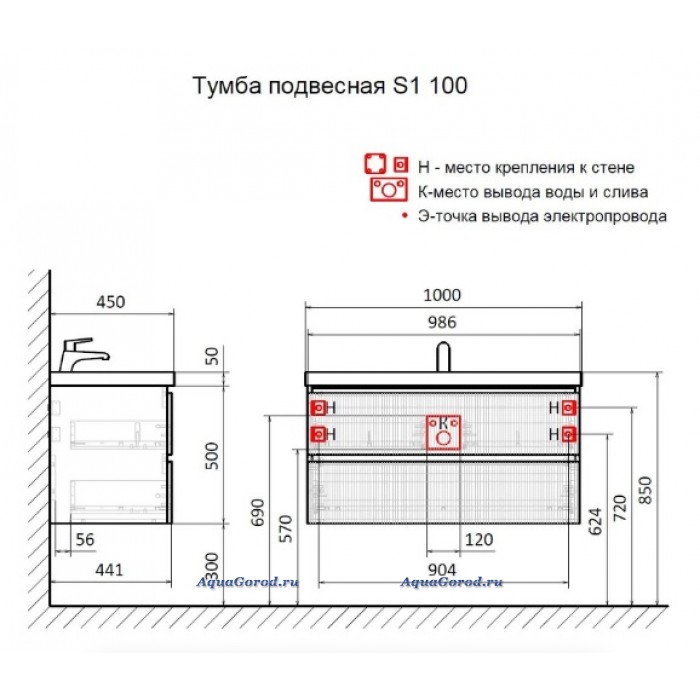| Тумба с умывальником подвесная размером от 100см | 3500 руб. |