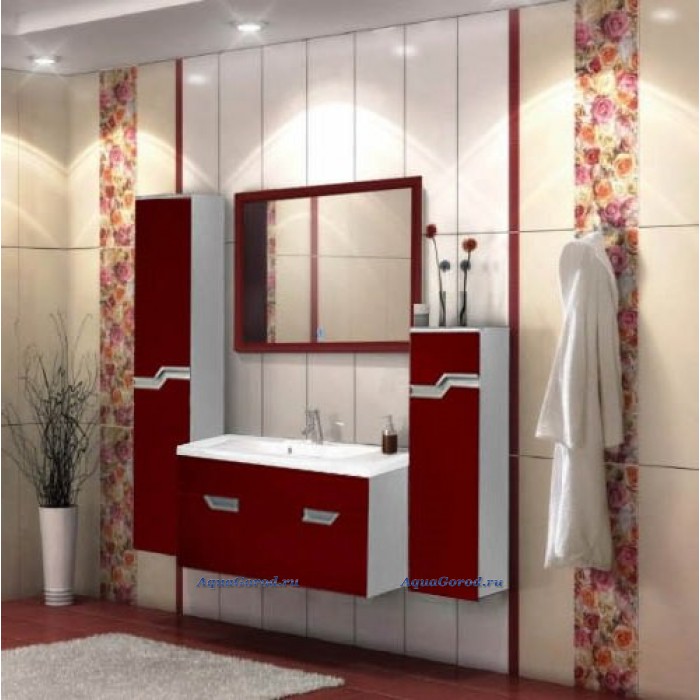 Тумба под умывальник Тритон Мирта 100 см, подвесная, с 2 ящиками, с 1 дверцей, вишневая