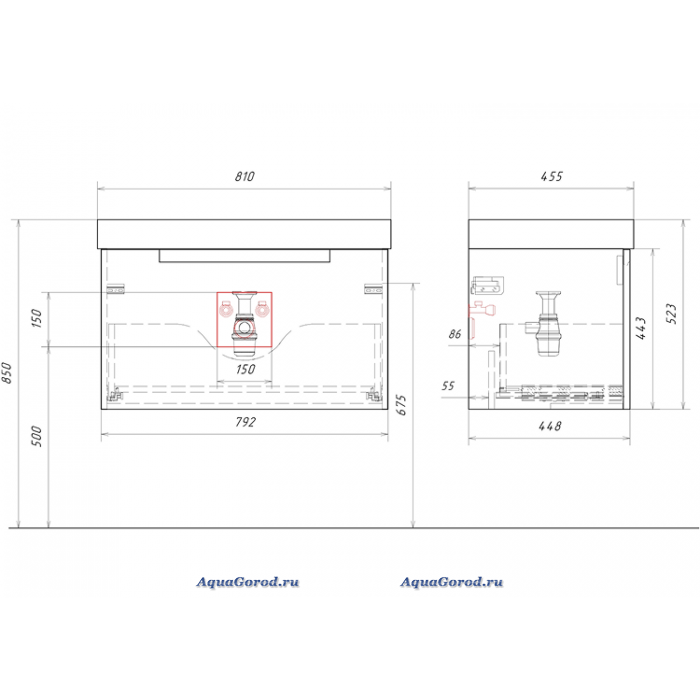 | Тумба с умывальником подвесная размером до 80см | 3500 руб. |