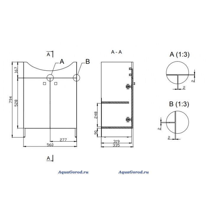 Габаритные размеры тумбы ШхГхВ, см: 56 х 33,5 х 79,4