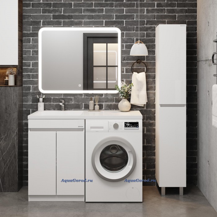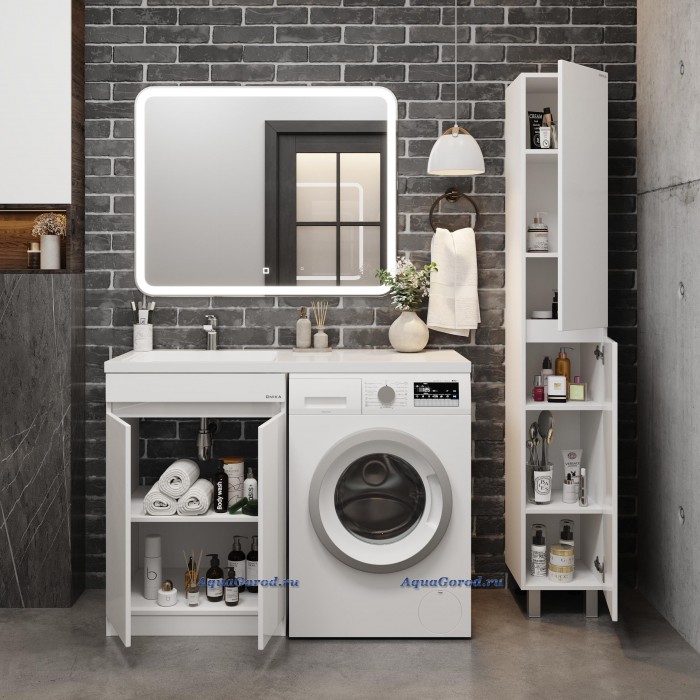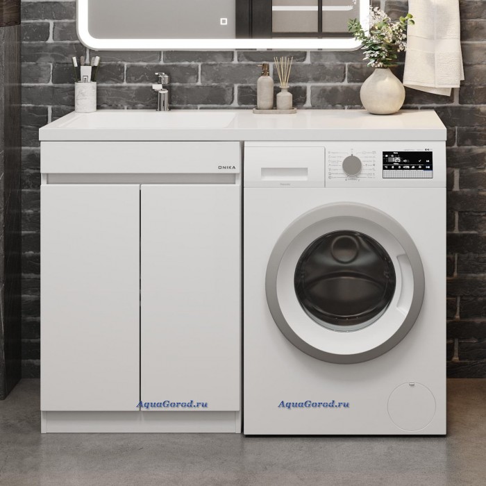 Тумба под умывальник Onika Милтон 60 с дверками под стиральную машину белый глянец