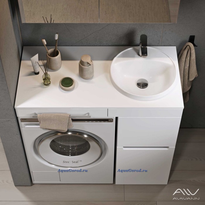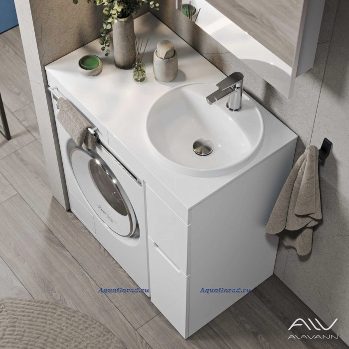 Тумба с раковиной Alavann Cosmetic 90 R под стиральную машину, напольная, глянцевая белая