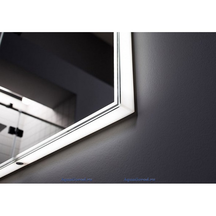 Чтобы зеркало осветилось спокойным голубоватым светом, необходимо просто провести рукой у инфракрасного датчика, который не бросается в глаза, но расположен очень удобно для пользователя в нижней части зеркала.