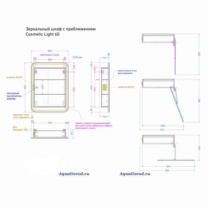 Зеркало-шкаф Alavann Cosmetic Light 60 с подсветкой и приближением