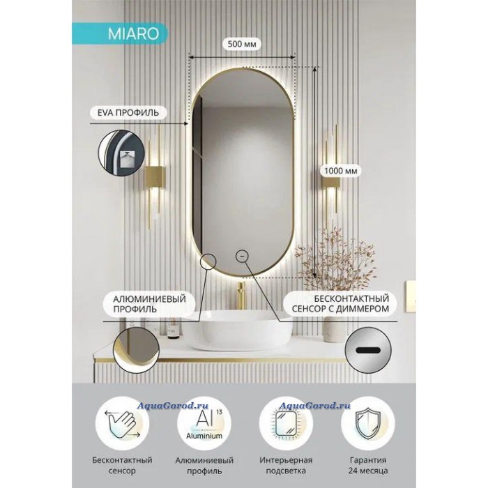 Зеркало-шкаф Континент Миаро / Miaro 50х100 с подсветкой золото 2582836779