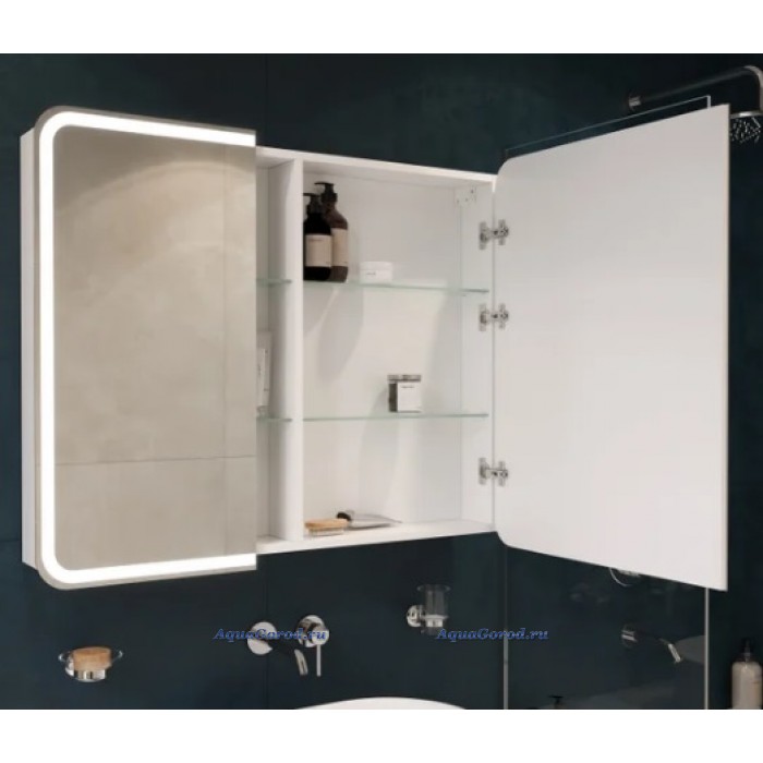 Зеркало-шкаф Stworki Ольборг МВК080 100 с подсветкой, прямоугольный, с розеткой