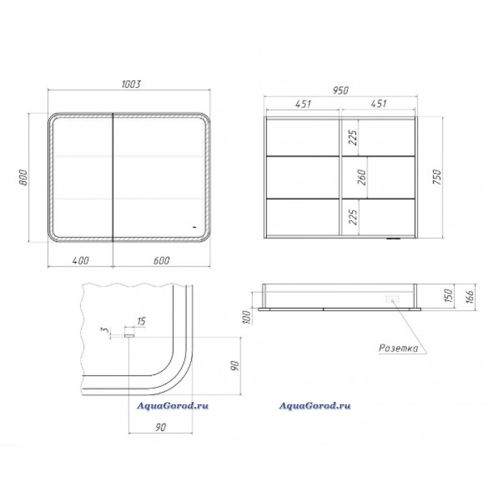 Ширина, см 100 Глубина, см 16.6 Высота, см 80