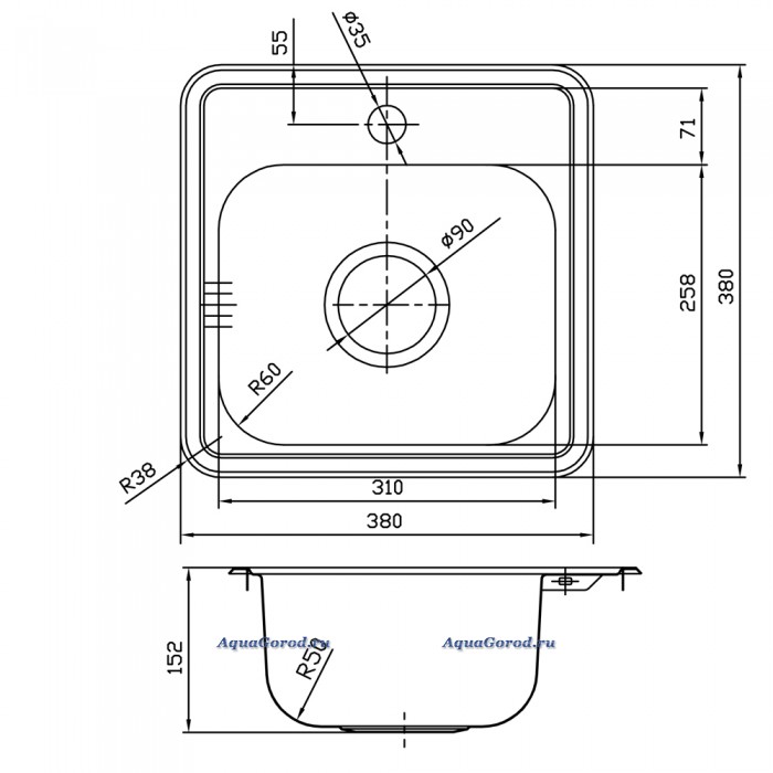 Мойка Iddis Strit S нержавеющая сталь полированная 380*380 STR38P0i77