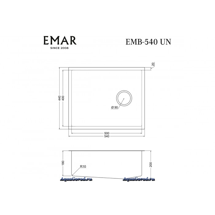 Мойка кухонная Emar EMB-540(UN) PVD Matt Golden стальная встраиваемая под столешницу матовое золото