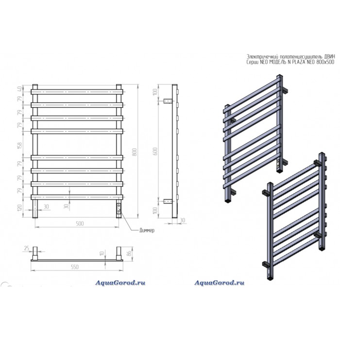 - Габаритные размеры ШхВхГ, см.: 55х80х9