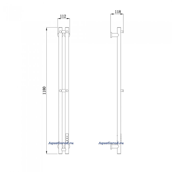 Полотенцесушитель электрический RAGLO R350.11.33 настенный сенсорный узкий с терморегулятором, матовая медь