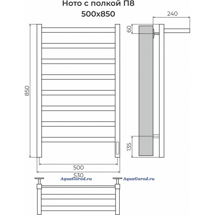 Полотенцесушитель электрический Terminus Ното с полкой П8 500х850 хром
