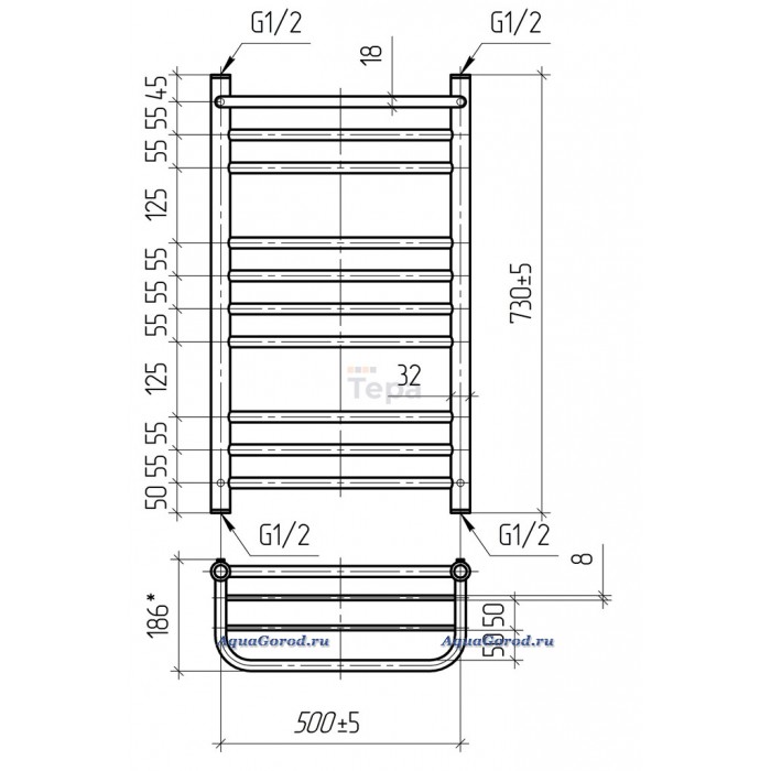 Полотенцесушитель Тера Богема с полкой водяной 500x800