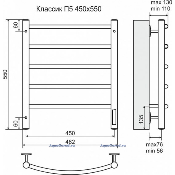 Полотенцесушитель электрический Терминус НЕРЖ. лесенка Классик П5 482х550