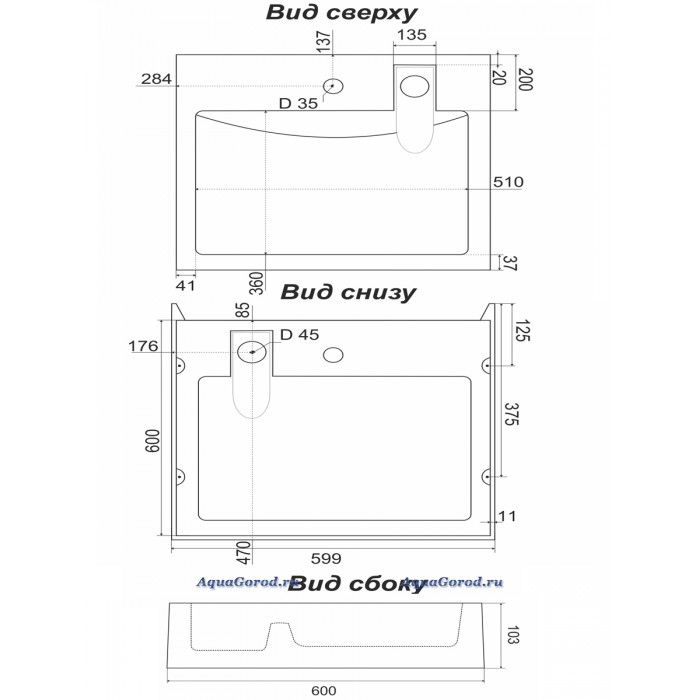 | Вид раковины | Подвесная |