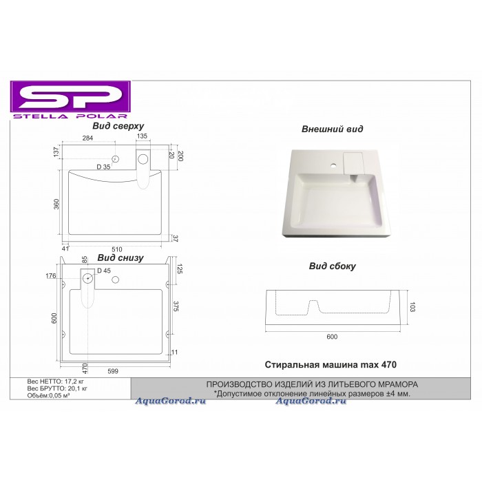 - Особенности: установка над стиральной машиной, без перелива