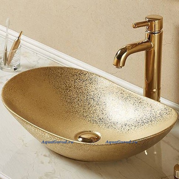 Раковина CeramaLux накладная 615х360х155 овальная золото