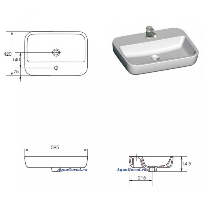 Габаритные размеры раковины ШхГхВ, мм.: 595х420х150