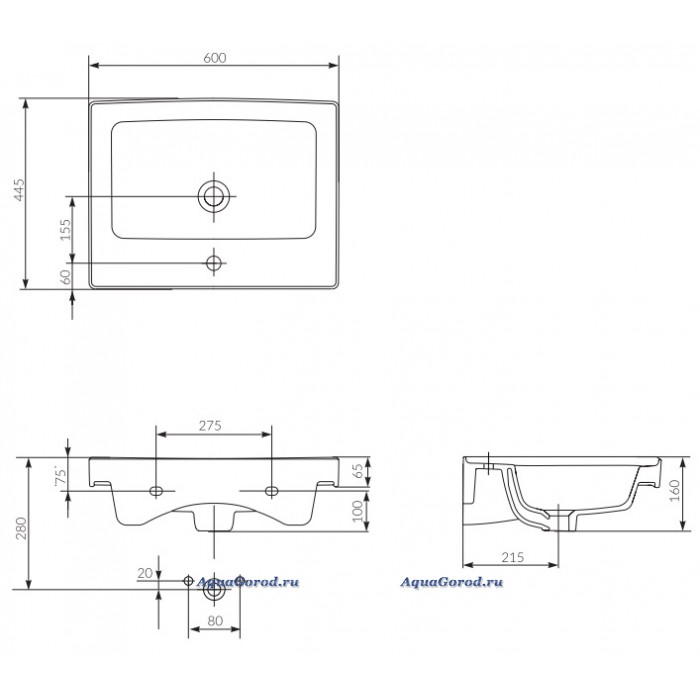 Габаритные размеры раковины ШхГхВ, мм.: 600х445х160