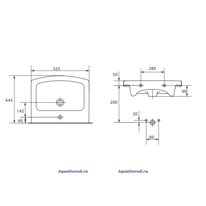 Габаритные размеры раковины ШхГхВ, мм.: 555х445х140