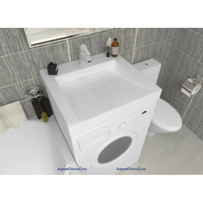 Раковина над стиральной машиной Stella Polar Берта SP-00000238 60 глянцевая белая, прямоугольная, с комплектом кронштейнов