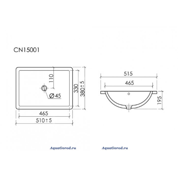 Раковина встраиваемая снизу Ceramicanova Era CN15001 52 глянцевая белая, прямоугольная